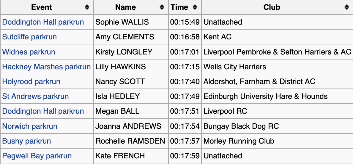 It was another parkrun ranking topper for Sophie Wallis, who is no stranger to the table here and often hits under 16 minutes for a Saturday morning parkrun outing. This weekend it was a 15:49 at Doddington Hall parkrun, which would have been a parkrun PB in 2023 or any year before but a 15:35 at the same event in May is the mark to beat now.